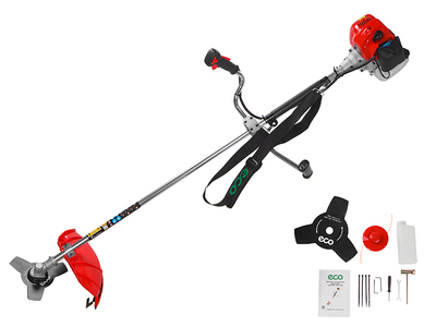 Одноплечный ремень; Полуавтоматическая косильная головка; Трехлопастной нож; Набор инструмента; Ёмкость для приготовления топливной смеси; Инструкция по эксплуатации. |